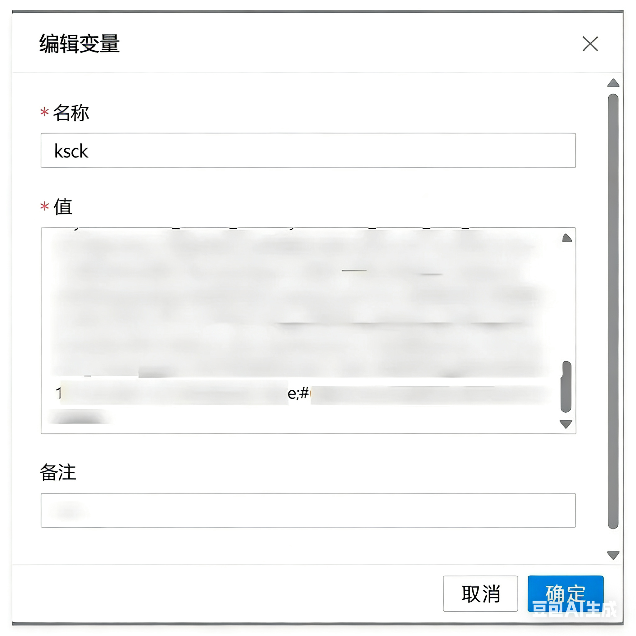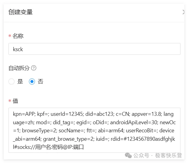 变量名称:ksck (请不要自己取名,其他名称无效)