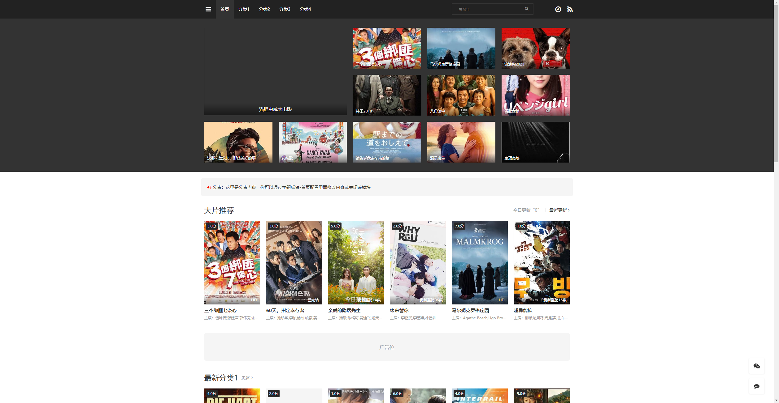 3、type页更改为和首页一样的轮播和小图(轮播必须推荐,推荐5,否则错位),小图显示为最近更新的影片,共11部,无需推荐。不需要的可以下载无轮播无小图版本