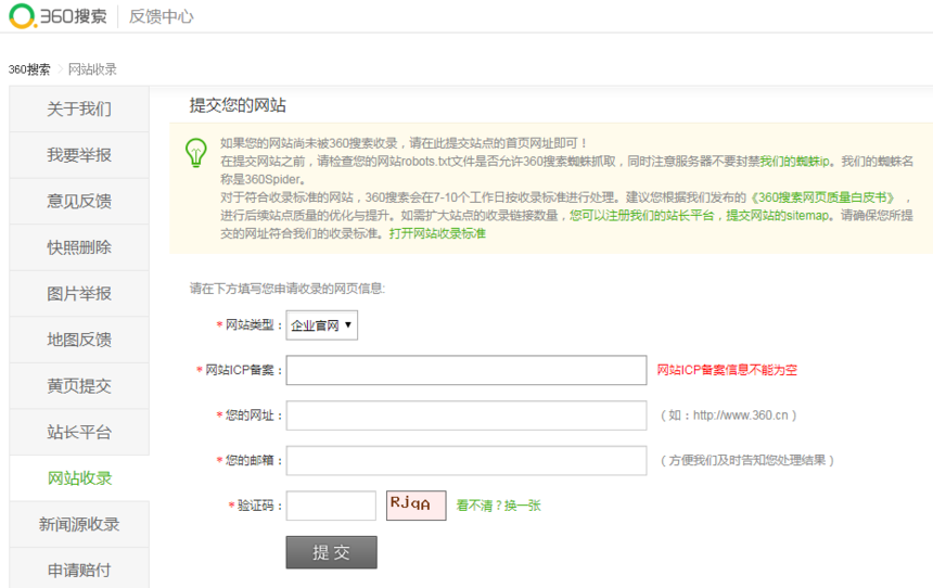 2 、360搜索引擎网站收录提交入口: