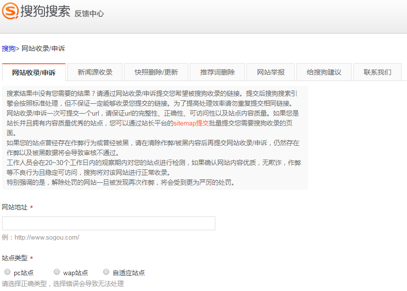3、搜狗搜索引擎网站收录提交入口: